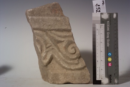 la qualità della decorazione risulta mediocre. Il tralcio doveva svilupparsi con andamento ondulato lungo tutto il bordo superiore del pluteo originario.