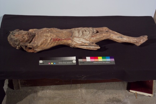 Scultura lignea policroma raffigurante Cristo crocifisso, privo della croce.