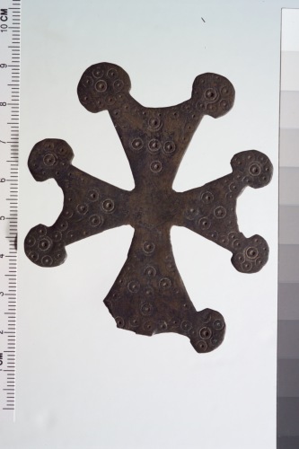 croce metallica, di tipo greco, ornata da gocce apicali di un braccio.
