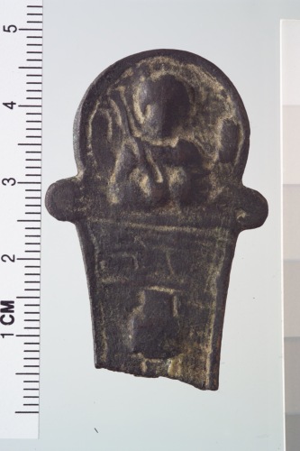 frammento, braccio superiore, di croce-encolpio metallica con busto di angelo.