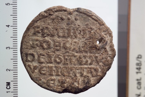 bolla di forma circolare del doge Francesco Foscari. Reca sul recto San Marco, a sinistra, regge con la destra un vessillo mentre il doge, a destra, reso di profilo e pi˘ piccolo a santo, regge l'asta del vessillo con la sinistra.