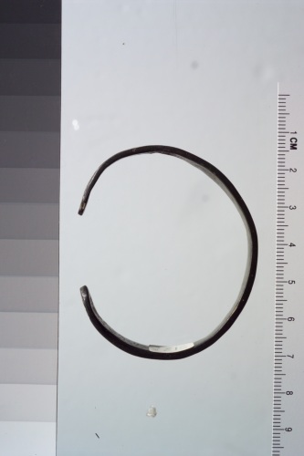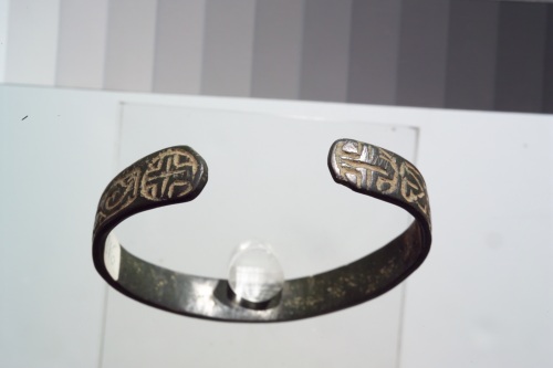 bracciale in bronzo, aperto, con fregio a motivo floreale con due crocette ai capi.