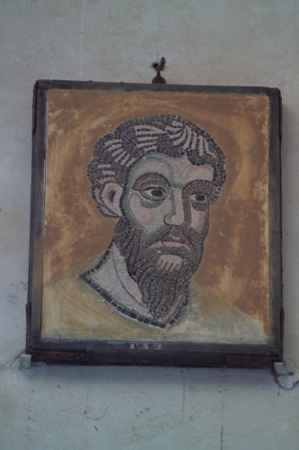 faceva parte della fascia superiore della controfacciata della basilica di Torcello, dove è raffigurata la scena dell'Anastasis e del Giudizio finale. L'apostolo è raffigurato nella zona della Deesis del Giudizio. Si tratta di una copia eseguita da Giovanni Moro in occasione dei restauri dei mosaici del 1848-53. Il mosaico fu realizzato per la sostituzione dell'originale, ma successivamente fu staccato per la ricollocazione, avvenuta nel 1896, dei frammenti musivi medioevali una volta avvenuto il loro recupero. La datazione al secolo XIX è inoltre confermata dalla realizzazione piuttosto semplificata dei tratti del volto. I caratteri stilistici tipici del secolo XII sono qui banalizzati e resi in modo stilizzato e con una cromia più limitata rispetto all'originale, anche se rispetto ad altre copie questa risulta di una qualità superiore.
