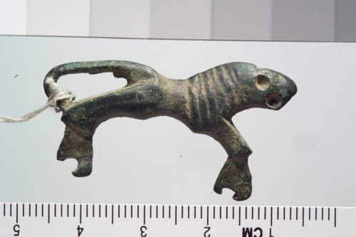 probabile arco di fibula con raffigurazione di tigre in corsa.