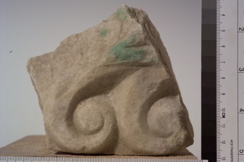 il frammento in marmo presenta una decorazione a cani correnti.
