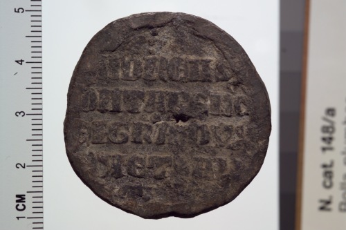 bolla di forma circolare del doge Andrea Contarini. Reca sul recto San Marco, a sinistra, regge con la destre un vessillo mentre il doge, a destre, reso di profilo e pi˘ piccolo a santo, regge l'asta del vessillo con la sinistra.