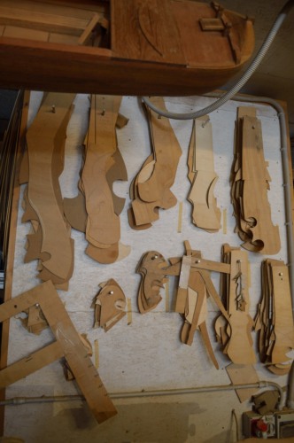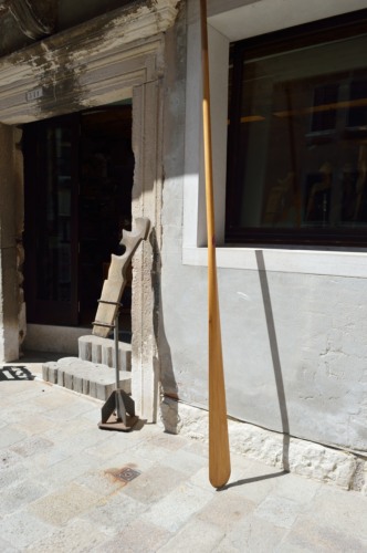 In questo mestiere, sottolinea, la cosa più importante è il remo, la fórcola infatti è sempre stata un accessorio, come si vede anche sulla tavoletta dellarte dei remèri (di cui ha una copia in bottega) dove, in primo piano, si vedono molti artigiani intenti alla lavorazione dei remi. Le forcole, inoltre, erano oggetti piatti e semplici fino al 700 e oltre. Realizzare un remo che voghi bene, ben bilanciato e che tagli bene lacqua, è più difficile che fare una fórcola, perché anche una fórcola imperfetta può svolgere il suo ruolo, tranne nel caso che si tratti di una fórcole, da regata, mentre questo non può avvenire se un remo è mal fatto. Nel XVIII secolo, le forcole hanno cominciato a diventare oggetti elaborati nello spazio e, via via, si è visto che le curvature miglioravano la funzionalità. Nel secolo scorso, soprattutto per le barche da regata, è stata portata in fuori si è notato che in questo modo si ottenevano notevoli miglioramenti. Negli ultimi 30 - 40 anni si è visto che, portando il peso in avanti, si miglioravano ulteriormente le prestazioni. Io ho imparato da Giuseppe Carli, che veniva direttamente dal medioevo, ed ho cercato di mantenere i principi imparati da lui, ma non misuro più i remi con il #passéto#, il piede veneto, poiché risultava molto complesso, mentre tale unità di misura è stata mantenuta dallo #squerariol# in quanto sarebbe oltremodo difficile memorizzare altrimenti le misurazioni degli elementi costitutivi degli scafi.