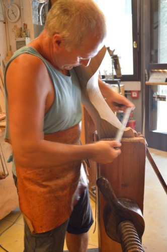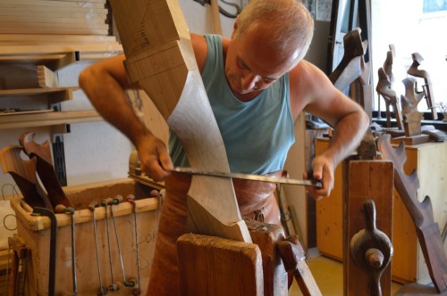 Per arrivare alla forma definitiva l'artigiano sottolinea "mi metto un limite" che è quello di passare tutti i lati della forcola non più di quattro volte: "la prima togli il materiale, la seconda precisi e perfezioni le linee, la terza pulisci, la quarta dai un'altra passatina e poi passi col raschietto". In totale occorrono "una ventina di ore con trenta anni di esperienza".