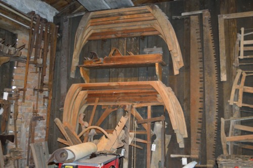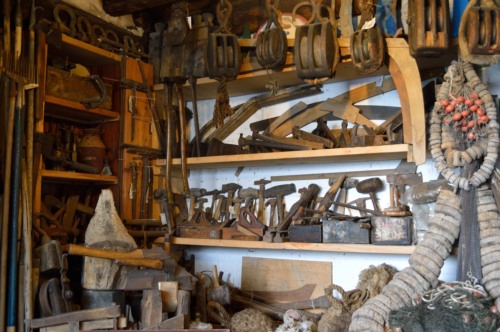 Altro materiale, come strumenti e attrezzi della cantieristica, proviene da #squèri# o botteghe che hanno cessato lattività: da uno squèro di Cannaregio che chiudeva abbiamo demolito lacaldaia per cuocere la pece, recuperando i pezzi originali e labbiamo ricostruita con i mattoni comera, con le portelle, la caldaia e il mestolo originali, nella sede dellArzanà a Cannaregio.