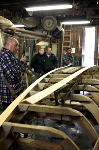 «I #trasti# [tavole che uniscono trasversalmente le fiancate della gondola] sono tutti fatti in ciliegio, perché è un legno più facile da essere piegato. Mentre le #nerve#, le fasce superiori (tavole fissate di piatto sopra i #sanconi#, cioè le assi verticali della costolatura), i fianchi, i #córboli# [tavole fissate ad incastro trasversalmente ai #sanconi#] che sono quelle inferiori e le #piane# [tavole orizzontali che formano il fondo della barca] in fondo sono in rovere, perché è solido. Tutta la parte della struttura deve essere solida. Cerco di trovare quello [legno di rovere] francese, che è migliore, anche se è più brutto da vedere, però va bene per far barche, non marcisce. Quello della Jugoslavia è più bello da vedere, magari, costa anche più soldi, però tende a marcire. Ha venature più belle, non per niente tutti i mobili li fanno con quello della Jugoslavia, perché per la maggior parte è tutto a vista. Venatura, colori, sono più belli, per quello. Però in casa non marcisce niente, in una barca è più facile: non è che marcisca, è più facile che marcisca».