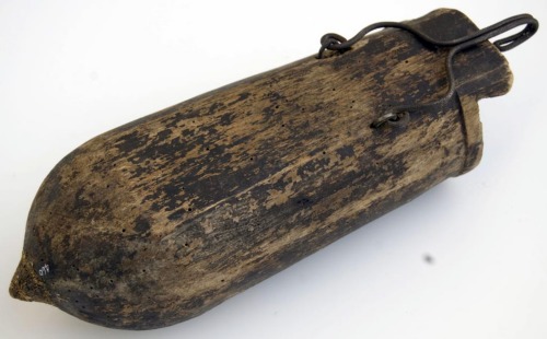 attrezzo indispensabile per il falciatore: riempito d'acqua e appeso alla cintura, era usato per riporvi la pietra per affilare la falce (cote).