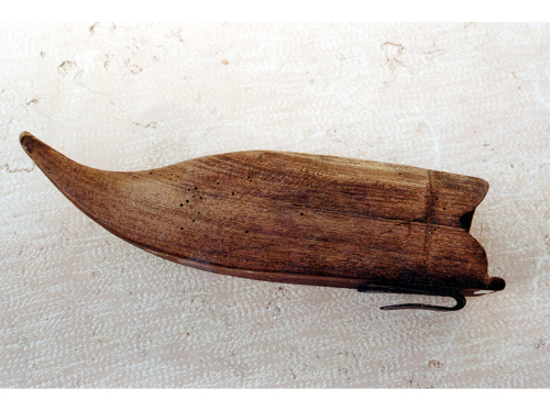 attrezzo indispensabile per il falciatore: riempito d'acqua e appeso alla cintura, era usato per riporvi la pietra per affilare la falce (cote).