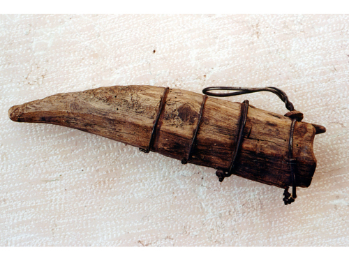 attrezzo indispensabile per il falciatore: riempito d'acqua e appeso alla cintura, era usato per riporvi la pietra per affilare la falce (cote).