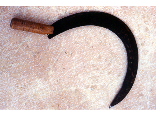 falcetto utilizzato per tagliare l'erba nei punti in cui non arriva la falce fienaia. Nelle zone alpine, questo attrezzo viene usato anche per mietere i cereali.