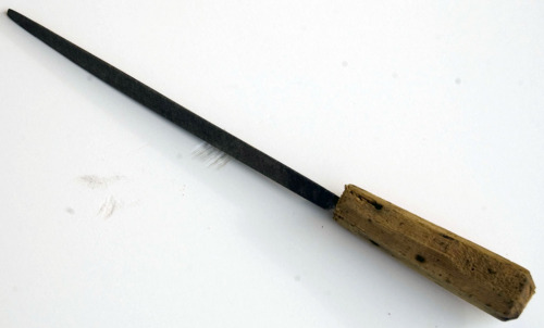 lima a triangolo: attrezzo manuale utilizzato per levigare e smussare oggetti in legno o in metallo come il ferro. Tipica lima da finitura.