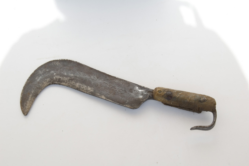 i boscaioli la usano per lavori di sramatura, usata soprattutto nel bosco ceduo, si porta agganciata a un apposito ferro fissato alla cintura dietro la schiena.