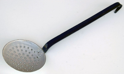 schiumare il brodo o estrarre le vivande già cotte dall'acqua e dall'olio bollenti
