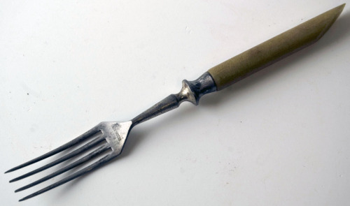 infilzare cibi solidi per portarli alla bocca o tagliarli e poi mangiarli