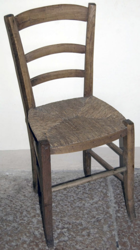 legno (sgrossatura/ rifinitura/ tornitura/ fissaggio ad incastro/ fissaggio con chiodi/ verniciatura) / paglia (intreccio) / ferro (modellatura a stampo industriale)