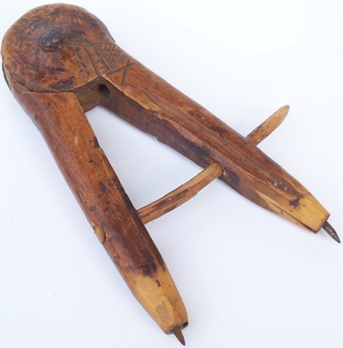 legno (sgrossatura/ rifinitura/ incisione/ fissaggio con chiodo) / ferro (battitura e sagomatura a caldo)