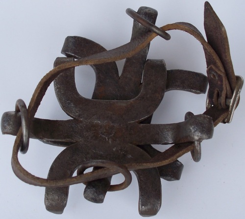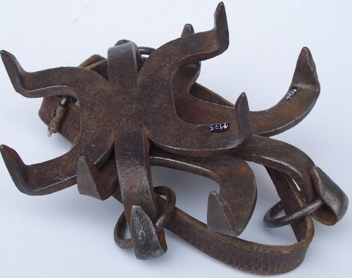 erano agganciati agli scarponi con un sistema di fibbie e cinghie. Le punte servivano per la progressione su ghiaccio o su neve ghiacciata