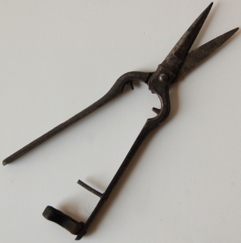 ferro (battitura e sagomatura a caldo/ affilatura/ fissaggio con vite) / cuoio (taglio/ fissaggio)