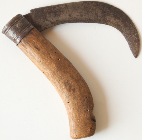 ferro (battitura e sagomatura a caldo/ affilatura/ fissaggio con vite) / legno (sgrossatura/ rifinitura/ fissaggio )