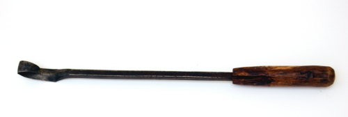 ferro (battitura e sagomatura a caldo/ fissaggio con ghiera) / legno (sgrossatura/ rifinitura con strumenti da taglio/ fissaggio con ghiera)
