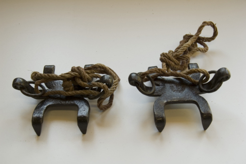 venivano fissati allo scarpone con cinghie, usati dagli zattieri e per lavorare nell'accatastamento dei tronchi, oppure per muoversi sul ghiaccio o sul terreno scosceso.