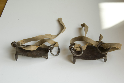 venivano fissati allo scarpone con cinghie, usati dagli zattieri e per lavorare nell'accatastamento dei tronchi, oppure per muoversi sul ghiaccio o sul terreno scosceso.