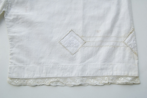 lino (taglio/ cucitura a macchina/ ricamo) / madreperla (lavorazione industriale)