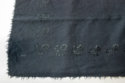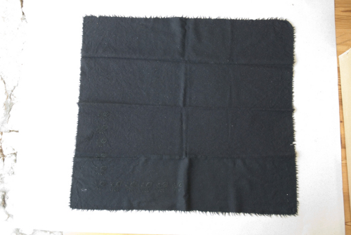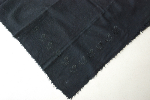 Fazzoletto da testa nero in lana con una bassa frangia ottenuta dalla sfilatura del tessuto. In un angolo del velo è ricamata una decorazione floreale in filo di seta. In un angolo sul retro c'è un quadratino di stoffa bianca su cui è ricamato in rosso il numero 50.Notizie storico-critiche