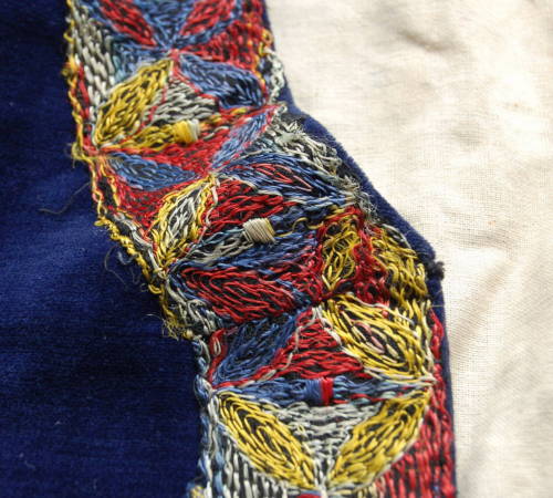 velluto (taglio/ cucitura a macchina/ rifinitura a mano) / cotone (taglio/ cucitura a macchina/ rifinitura a mano) / ferro (produzione industriale)