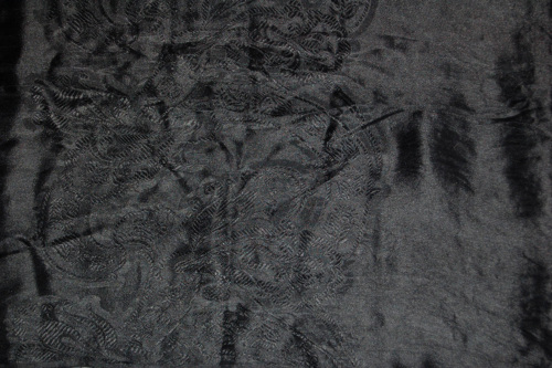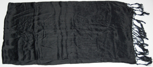 In cotone rasato nero tipo damascato. Sui due lati più corti annodate ci sono delle frange. Produzione industriale.Notizie storico-critiche