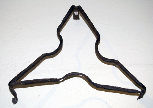 struttura in ferro a forma triangolare, con una rientranza concava alla metà di ogni lato, sorretta da 3 piedini posti ad ogni angolo. Due piedini presentano l'estremità inferiore leggermente rivolta verso l'alto.Notizie storico-critiche