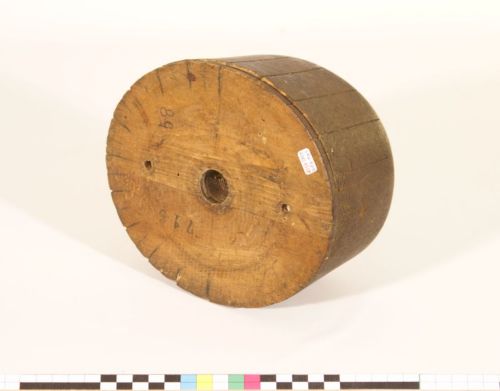 modellazione del cappello durante l'intreccio - la calotta è dotata di incisioni che servono a guidare l'ordito formato da fili di paglia o rafia, fissati con spilli sulla sommità. Un foro nella parte inferiore permette di infilzarla su un palo di sostegno detto #omo#; le forme per cappello di proprietà di fabbriche e intermediari venivano date in uso alle lavoranti a domicilio