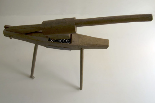 Oggetto in legno costituito da un cavalletto con 4 gambe oblique che reggono il corpo allungato e a sezione trapezoidale con vano centrale di forma rettangolare. Ad un'estremità del corpo è fissato, tramite cavicchio, il braccio mobile che fa da leva e permette di inserire all'interno del vano centrale un blocchetto in legno a sezione rettangolare. Il fondo del vano rettangolare è costituito da una lamiera di ferro con una serie di piccoli fori, fissata al corpo dell'oggetto con chiodi in ferro.Notizie storico-critiche
