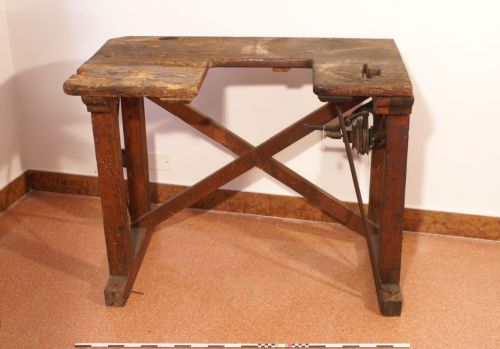 supporto per macchina da cucire - le macchine da cucire e relativi tavoli sono dapprima in dotazione solamente a fabbriche e laboratori artigiani per la cucitura dei cappelli, poi con il loro diffondersi vengono anche in uso cedute alle lavoranti a domicilio