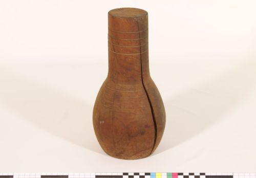 sagomatura del rivestimento protettivo del fiasco in vetro - forma per fiasco: il rivestimento protettivo in paglia veniva intrecciato su di questa forma, poi sfilato e avvolto attorno alla bottiglia