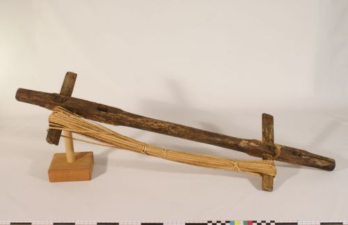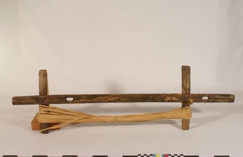 misurare e avvolgere la treccia - il #brassolaro# è un attrezzo usato per avvolgere e contemporaneamente misurare la treccia; su ciascuna coppia di cavicchi si avvolgono da 30 a 33 giri di treccia (ognuno detto #passéto#) che formano pertanto una matassa detta #paco# lunga 35-40 metri; , su ogni #brassolaro# possono essere avvolte da 2 a 4 matasse di treccia contemporaneamente, a seconda vi siano infisse 1 o 2 coppie di traverse; era il mercante, detto #pacàro# che ritirava la treccia di casa in casa, che provvedeva a misurarla e pagare il prezzo corrispondente