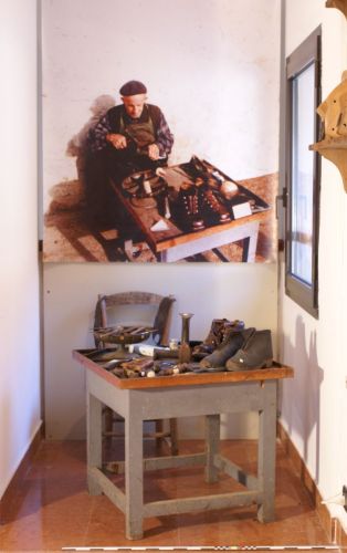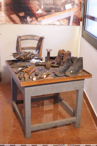 piano di appoggio e di lavoro - sul tavolo, il ciabattino appoggia gli attrezzi del mestiere ed il materiale minuto da lavoro, nonché le forme in ferro o legno che utilizza per costruire o riparare le calzature