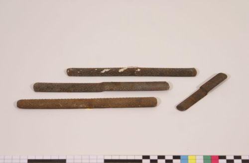 smussatura del bordo delle suole - le suole vengono rifinite e arrotondata con raspe leggere (#raspéte#), poi sono smussate con un particolare coltello sagomato (detto #refiladóre#), e ripassate ulteriormente con un coccio di vetro mo' di smeriglio fine, che completa la lucidatura del filo della suola