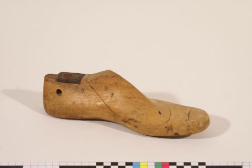 modellatura della scarpa - servono un paio di forme (una destra ed una sinistra) per ciascun numero di scarpe, ma in questo caso è rimasto solo l'esemplare sinistro