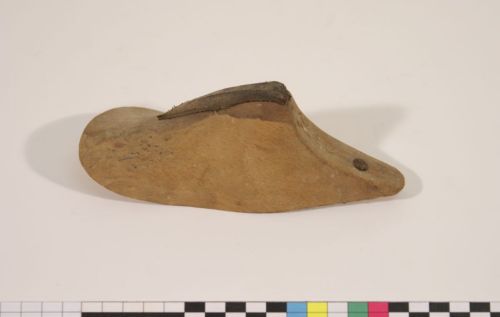 modellatura della scarpa - sul collo è applicata una strisciolina di cuoio pressato per modificare la forma e adattarla meglio al collo del piede