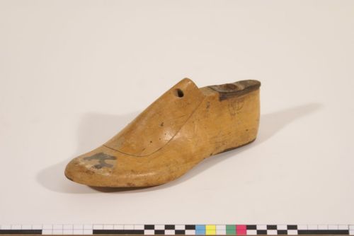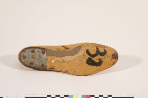 modellatura della scarpa - servono un paio di forme (una destra ed una sinistra) per ciascun numero di scarpe, ma in questo caso è rimasto solo l'esemplare sinistro
