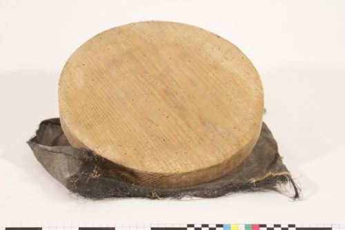 pressare il formaggio ed estrarne il siero - il disco di legno viene posto sopra la cagliata per distribuire uniformemente la pressione dei pesi; sotto la fascera viene posto il il telo che consente al siero di gocciolare (operazione detta sgrondo), ma trattiene la cagliata