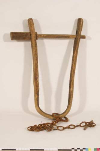 trattenere gli animali - la #canàola# era un collare rudimentale utilizzato soprattutte per gli ovini (capre e pecore), talora anche per le vacche; ad esso veniva attaccata la capezza (#cavéssa#) oppure, come in questo caso, la catena per tenere l'animale legato alla mangiatoia nella stalla (#caéna da vache#)