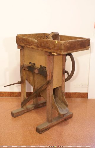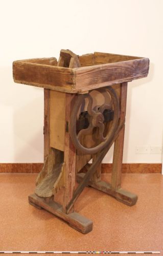 sgranare le pannocchie di mais - le pannocchie venivano infilate nell'apposita bocca posta sul vassoio superiore