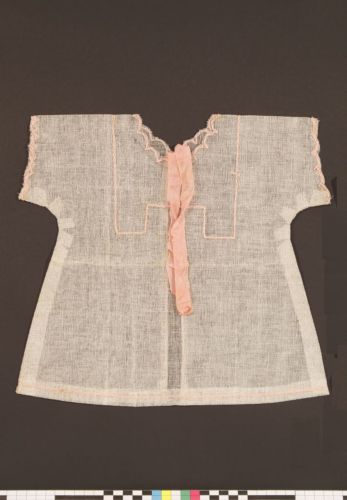 modello per camiciola - il modello serviva a ritagliare da una pezza di stoffa le due metà che cucite avrebbero composto la camiciola; spesso tali modelli venivano prestati ad altre sarte o madri in grado di tagliare e cucire la stoffa: la garza di cotone, anziché la carta usualmente impiegata nei modelli, ne diminuiva l'usurabilità