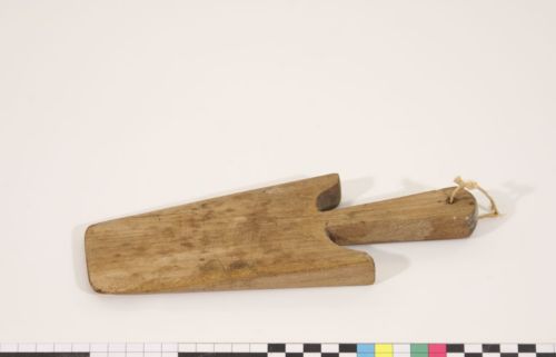 per tagliare la polenta e raccogliere le fette - oltre che a suddividere la polenta raffreddata sulla tafferia, con la paletta si ponevano le fette di polenta ad abbrustolire sulla piastra della cucina economica, rigirandole quando avevano formato una crosta superficiale